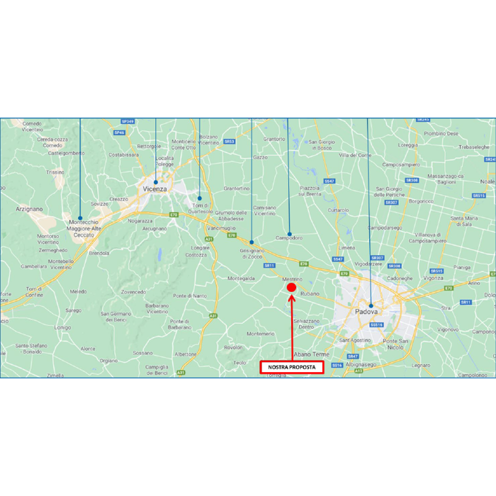 L'area si trova in prossimità della SR11, direttamente collegata con l'E70 e l'A31. La posizione in stretto contatto con le arterie princiapali del Veneto consente di spostare agevolmente diversi carichi in modo efficiente.