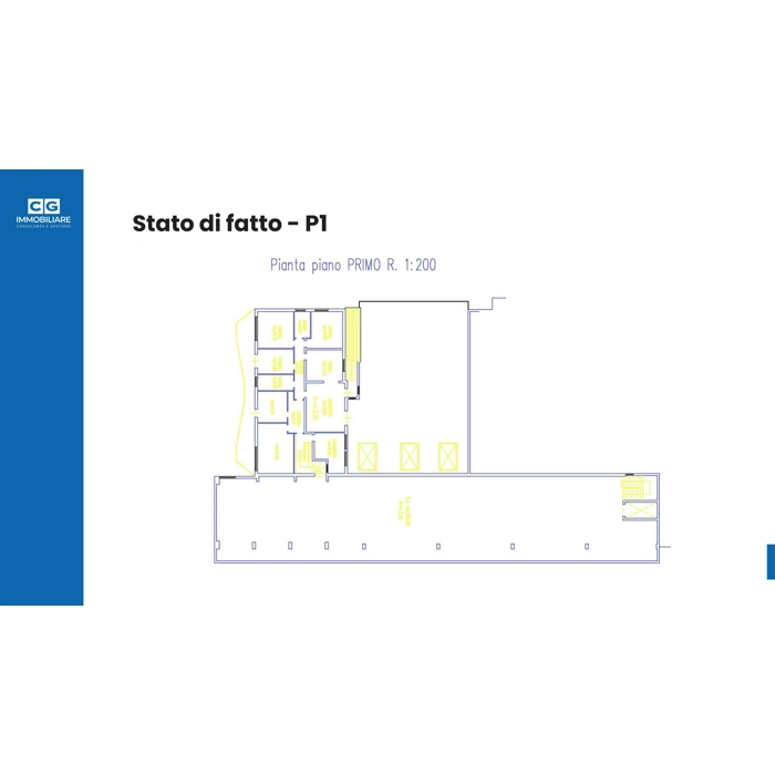 Il piano primo, di circa 750 mq, è a destinazione residenziale e dispone già di verifica positiva per la realizzazione di sette appartamenti, due dei quali risultano completati.