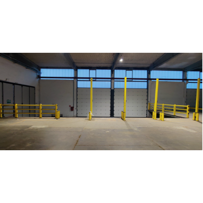 Il fabbricato è dotato di due fronti operativi, composti rispettivamente da una banchina di carico con 5 baie, ed una banchina di carico con portoni sezionali e rampe per furgoni.